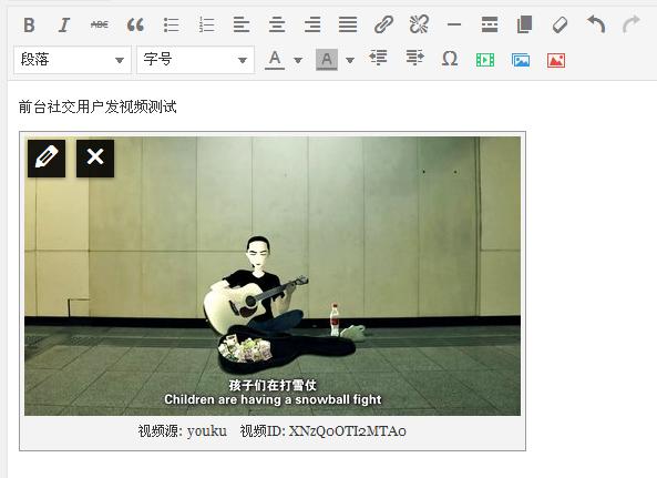 • 很简单输入视频地址,点击“解析并插入”就会自动解析并插入到文章,直接显示视频缩略图(效果看下图)