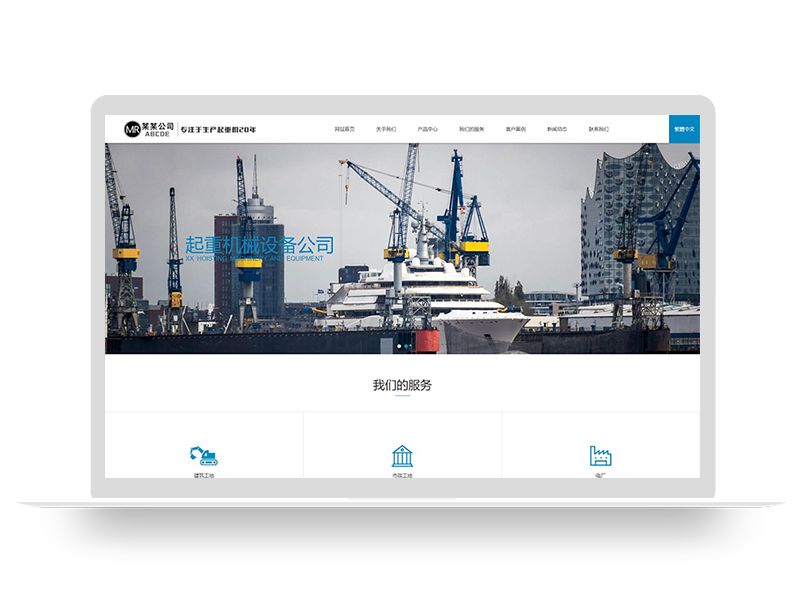 (自适应手机端)重工机械设备网站pbootcms模板 起重机吊机机械设备通用网站源码